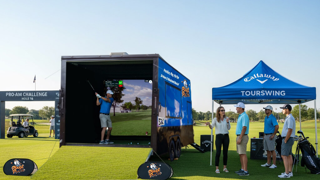 Dial up the excitement at your next golf tournament with a mobile simulator that lets players practice on the range, dial in shots, and compete on virtual courses in any weather, at any venue. .